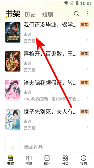 1、在七貓小說書架頁(yè)面,點(diǎn)擊想要收聽的小說,進(jìn)入小說詳情頁(yè)面。