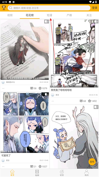 1、打開柚次元APP,在首頁上方點擊短漫的標(biāo)簽。