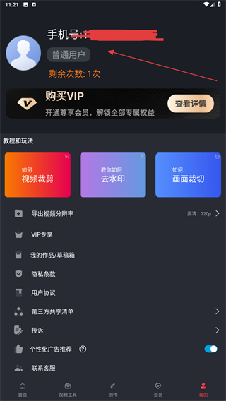 2、進(jìn)入個人中心的頁面內(nèi),點擊用戶手機號的區(qū)域位置。
