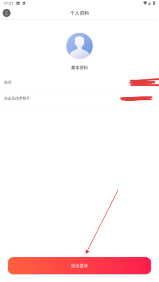 3、進(jìn)入個人資料的頁面內(nèi),點擊正下方退出登錄的按鈕。