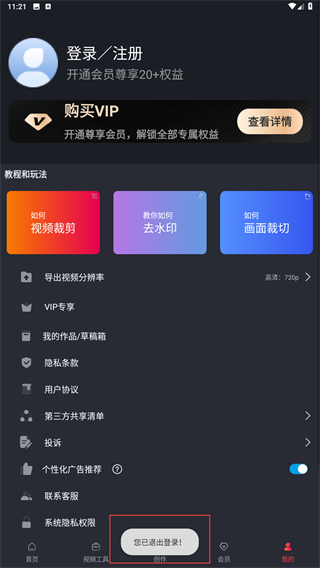 4、會自動返回個人主頁內(nèi),顯示已退出登錄的字眼表示已退出。