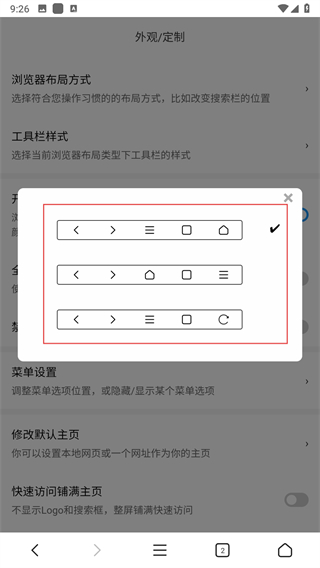 快速,極簡的瀏覽器,省電,省流,不駐留任何后臺進程,良心權限,只需要聯(lián)網(wǎng)和讀取手機狀態(tài)信息