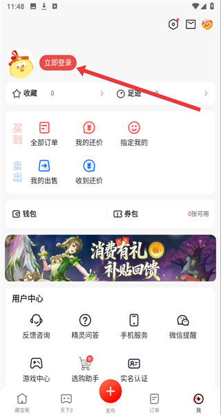 2、在進(jìn)入到我的主頁后,可以點(diǎn)擊左側(cè)立即登錄按鈕,跳轉(zhuǎn)至登錄頁面。