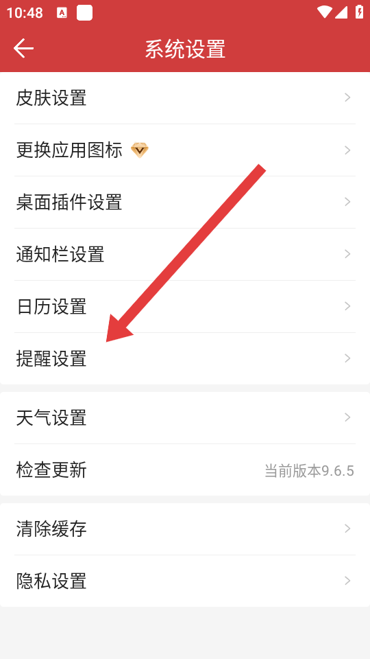 2、在系統(tǒng)設(shè)置的頁面中,需要點擊提醒設(shè)置,進入提醒配置的界面。