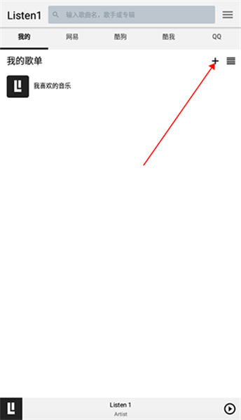 1.點(diǎn)擊進(jìn)入軟件找到“我的”界面,在【我的歌單】中點(diǎn)擊右上方的“+”號(hào),如下方所示;