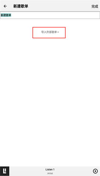 2.隨后進(jìn)入【新建歌單】頁面,點(diǎn)擊“導(dǎo)入外部歌單”;
