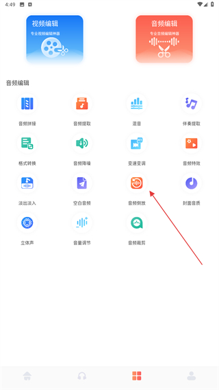 2、進(jìn)入音頻剪輯的頁面內(nèi),找到并點(diǎn)擊音頻倒放的功能按鈕。