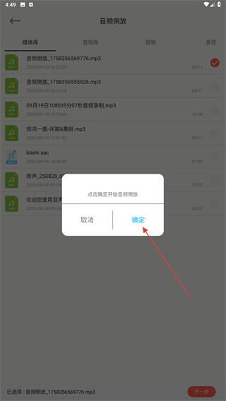 4、在彈出的確認(rèn)內(nèi)容中,點(diǎn)擊確定的按鈕即可倒放成功。