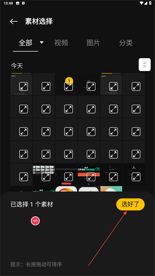 2、進(jìn)入素材選擇的界面內(nèi),選擇后再點(diǎn)擊選好了的按鈕。