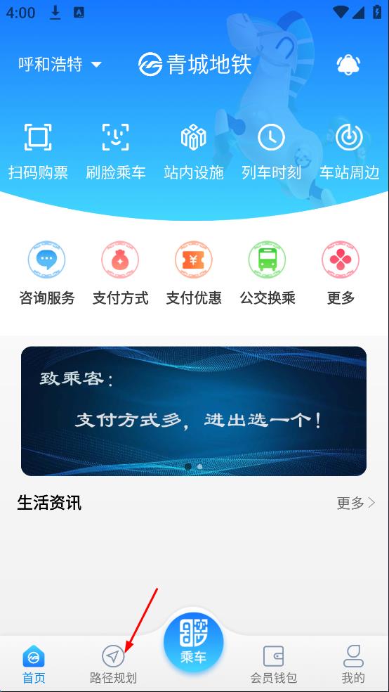 呼和浩特地鐵在開(kāi)通運(yùn)營(yíng)后可以使用手機(jī)掃碼進(jìn)站啦。市民可安裝“青城地鐵”APP,并通過(guò)實(shí)名認(rèn)證進(jìn)行注冊(cè),待開(kāi)通運(yùn)營(yíng)后,市民可打開(kāi)APP刷碼進(jìn)站乘車(chē)!用戶輸入任意公地鐵的起點(diǎn)站與終點(diǎn)站,查詢(xún)地點(diǎn)之間的地鐵路線、公交換乘方案、地鐵站地圖導(dǎo)航路線等信息,并提供多種路線方案可切換選擇,在地圖導(dǎo)航上可直接方便地選擇起點(diǎn)站與終點(diǎn)站,即可查詢(xún)地鐵、公交票價(jià)、乘坐時(shí)長(zhǎng)、步行公里數(shù)。