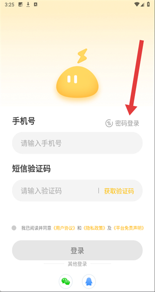 2、在登錄界面點擊“密碼登錄”,切換到密碼登錄界面。