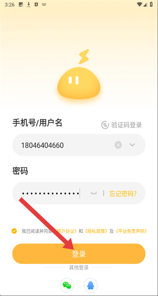 4、在密碼登錄界面輸入密碼,勾選同意相關(guān)協(xié)議后點擊“登錄”,完成賬號登錄操作。