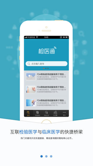 檢醫(yī)通,是國內(nèi)首款在移動客戶端實現(xiàn)“專業(yè)的檢驗辭典”和“社區(qū)媒體交互功能”相結(jié)合的智慧醫(yī)療應用,也是一款建立在基礎醫(yī)學與臨床醫(yī)學之間的橋梁應用。綜述性地介紹了檢驗項目、臨床意義、參考值、標本采集要求以及各項臨床疾病所針對的檢驗項目等,為臨床工作提供了準確的參考和精確的數(shù)據(jù)。強大的社區(qū)媒體交互功能,凝聚眾多專業(yè)醫(yī)務工作者的智慧思想和專業(yè)創(chuàng)新,高效、便捷地推動臨床檢驗醫(yī)學的良性可持續(xù)發(fā)展。