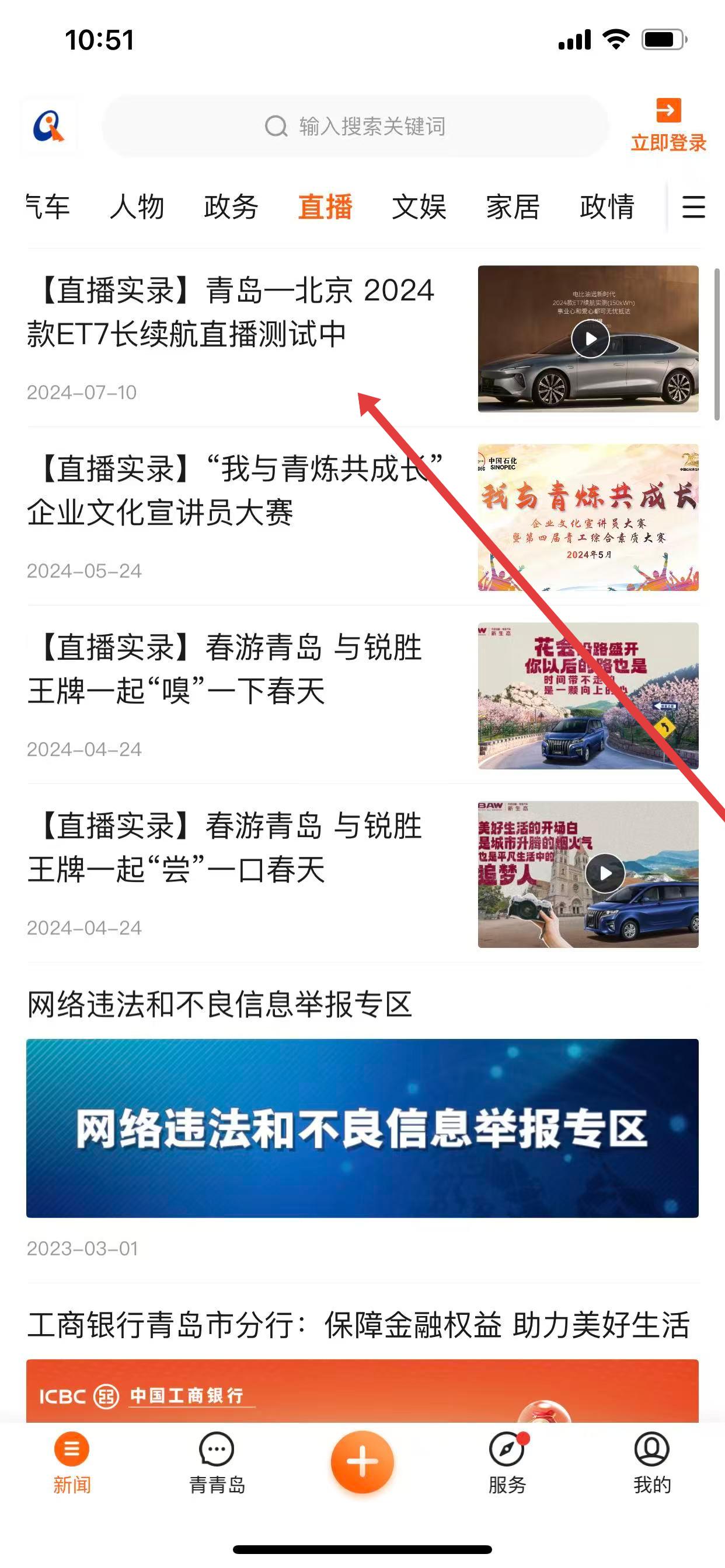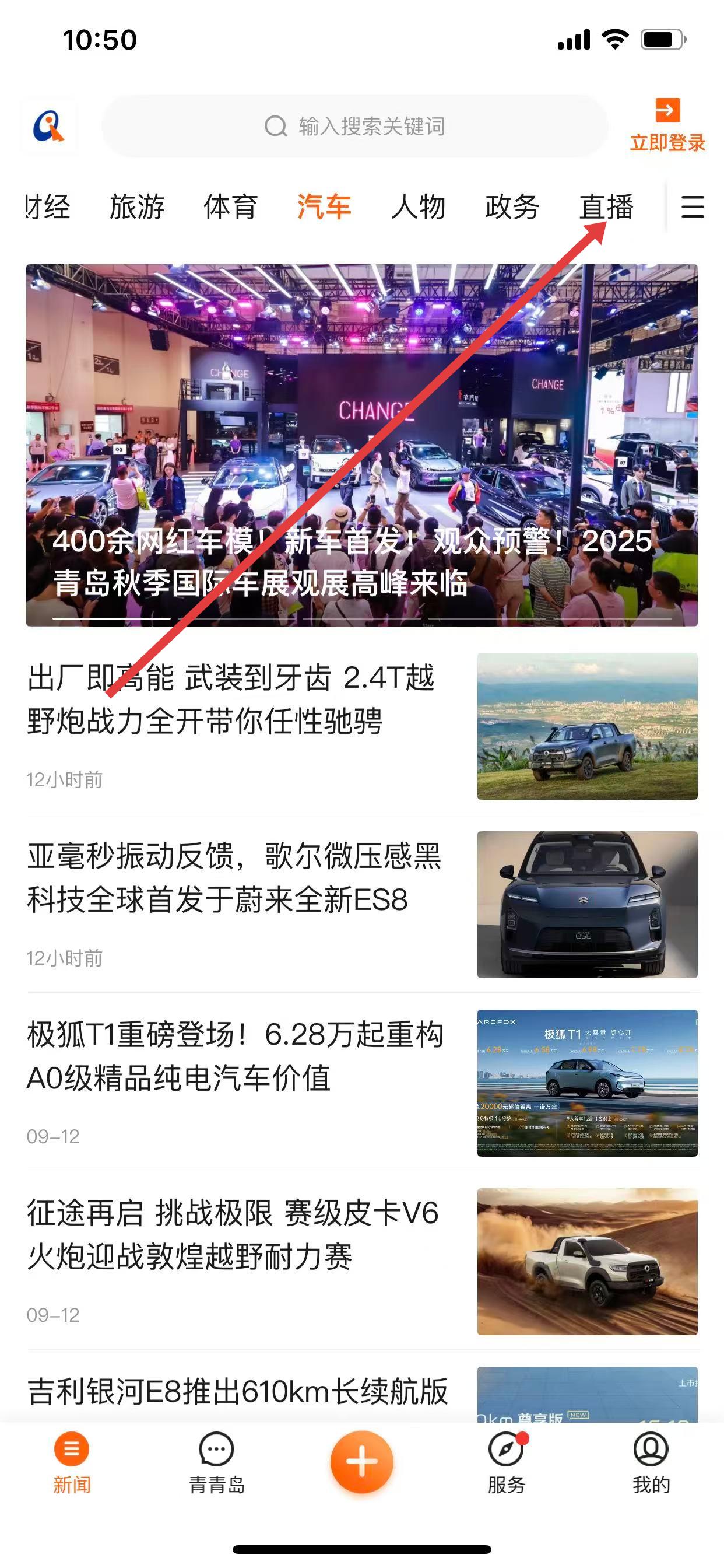 1、打開青島新聞App,點擊首頁上方導(dǎo)航欄中直播選項。