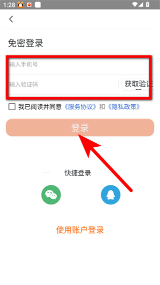 3、在登錄頁面,輸入手機號和驗證碼,勾選同意協(xié)議后點擊登錄按鈕即可。