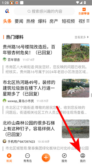 1、在青島新聞app首頁,點擊右下角我的選項,進入個人頁面。