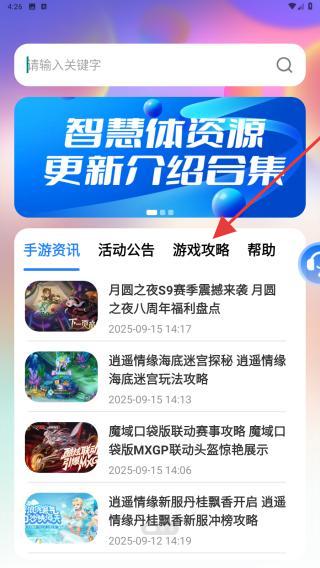 2、在此界面內,點擊并切換游戲攻略的功能圖標。