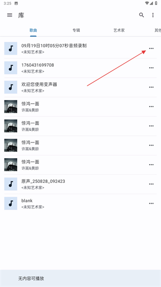 1、打開音樂速度調(diào)節(jié)器的APP,在歌曲的頁面內(nèi)點(diǎn)擊右側(cè)三個(gè)點(diǎn)的圖標(biāo)。