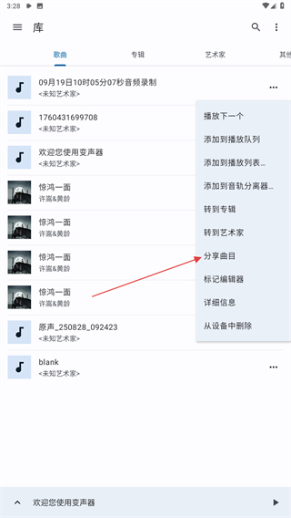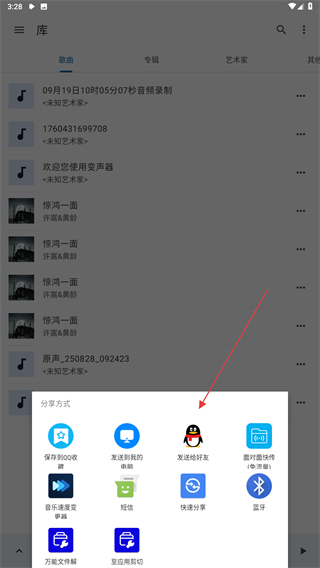 2、在彈出的菜單欄中,用戶需找到并點(diǎn)擊分享曲目的功能按鈕。