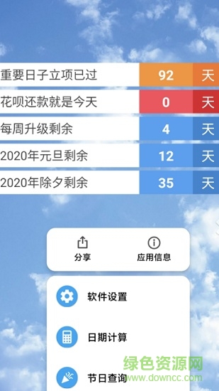 日子類型:正/倒數(shù)日、生日、紀(jì)念日