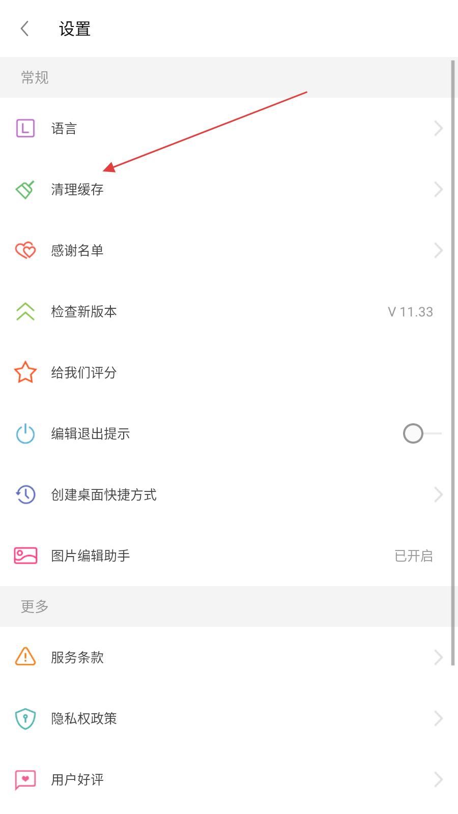 3、在設(shè)置頁面的常規(guī)板塊里,點擊清理緩存選項,進(jìn)入清理緩存界面。