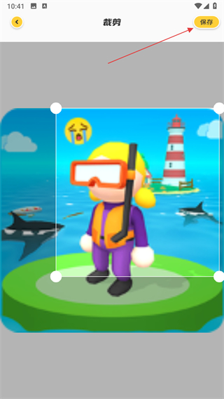 4、在裁剪頁面,調(diào)整裁剪區(qū)域后,點擊右上角的保存按鈕。