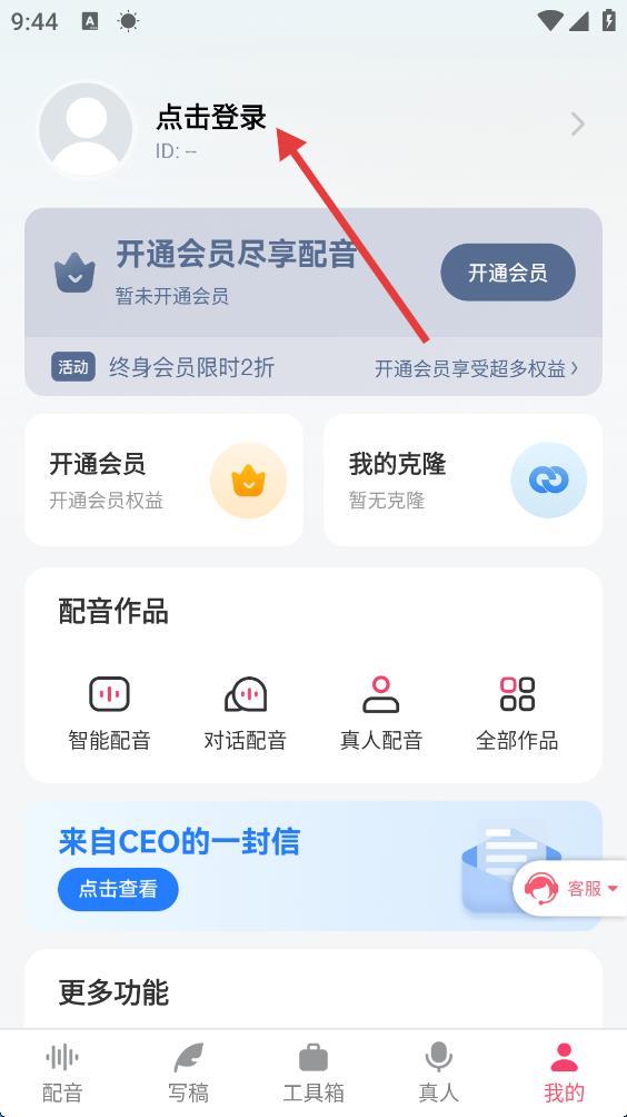 1、打開配音神器,點(diǎn)擊底部導(dǎo)航欄我的,進(jìn)入個(gè)人頁面。