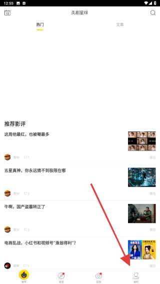 1、打開美劇星球APP進(jìn)入到首頁(yè)內(nèi),點(diǎn)擊右下角我的圖標(biāo)。