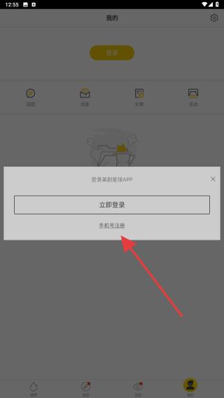 3、在彈出的登錄模式中,選擇并點(diǎn)擊手機(jī)號(hào)注冊(cè)。