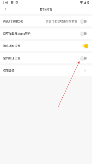 4、在其他設(shè)置頁面,找到定向推送設(shè)置,點(diǎn)擊其右側(cè)的開關(guān)按鈕。