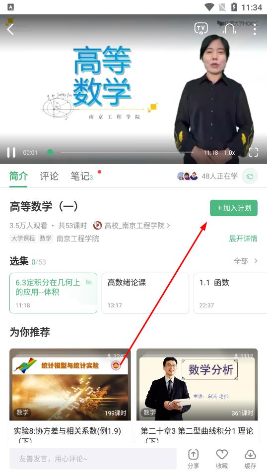 3、進(jìn)入課程詳情頁(yè)面后,點(diǎn)擊課程標(biāo)題右側(cè)的綠色+加入計(jì)劃按鈕。