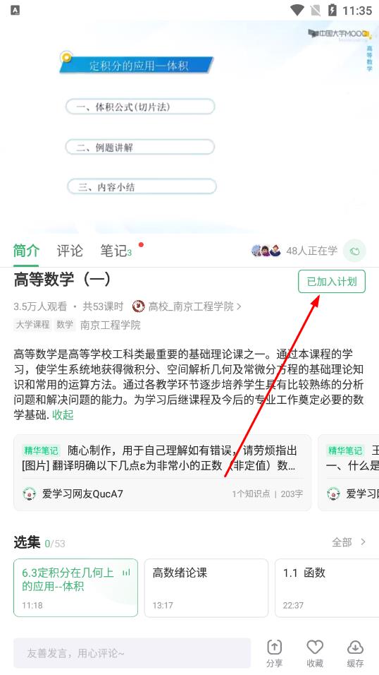 4、點(diǎn)擊后,該按鈕會(huì)變?yōu)橐鸭尤胗?jì)劃,表示您已成功將此課程加入學(xué)習(xí)計(jì)劃。