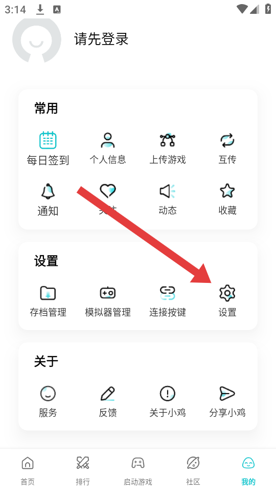 1、打開(kāi)小雞模擬器,進(jìn)入我的頁(yè)面,點(diǎn)擊設(shè)置的選項(xiàng),進(jìn)入設(shè)置的界面。