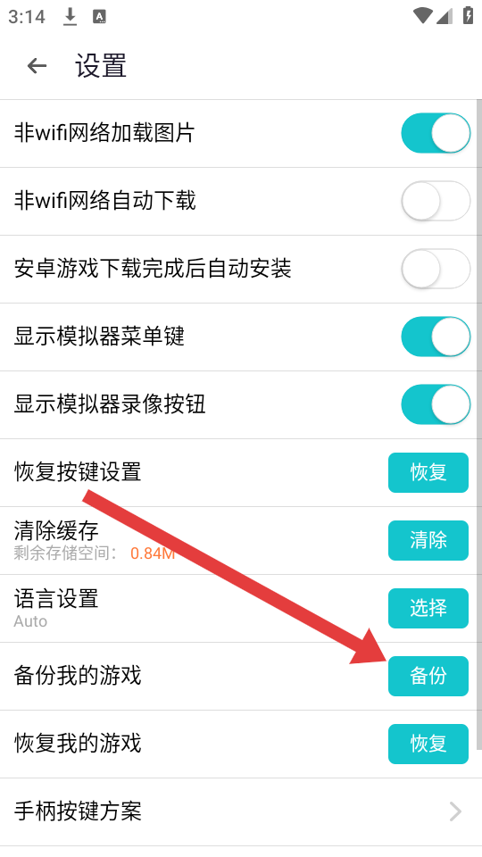 2、在設(shè)置的頁(yè)面中,找到備份我的游戲的選項(xiàng),點(diǎn)擊右側(cè)備份按鈕,開(kāi)始備份游戲數(shù)據(jù)。