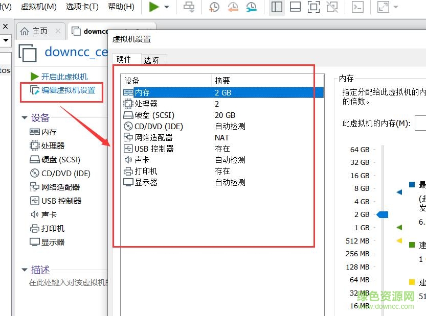 16.然后你點(diǎn)擊編輯虛擬機(jī)設(shè)置,可以看到你的虛擬機(jī)設(shè)置情況