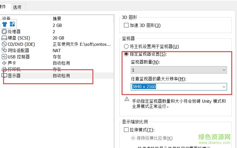 18.在點(diǎn)擊顯示器,選擇指定監(jiān)視器設(shè)置,選擇你最大的分辨率,我這里是3840*2160,然后保存