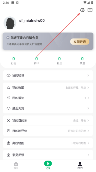 1、打開六只腳應(yīng)用程序,在個(gè)人頁面右上角,找到齒輪形狀的設(shè)置圖標(biāo)并點(diǎn)擊。