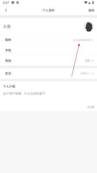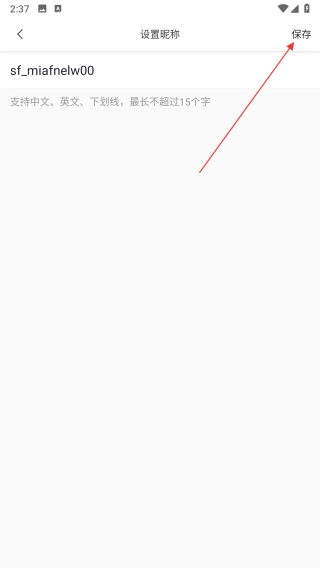 4、在輸入框中輸入符合平臺規(guī)則的新昵稱后,點(diǎn)擊右上角保存按鈕。