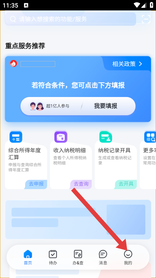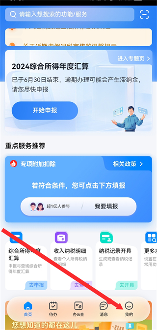 1、打開個人所得稅APP,點擊底部導航欄的我的,進入個人頁面。