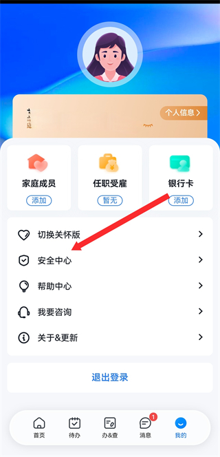 2、在個人的頁面中,點擊安全中心,進入安全中心的頁面。