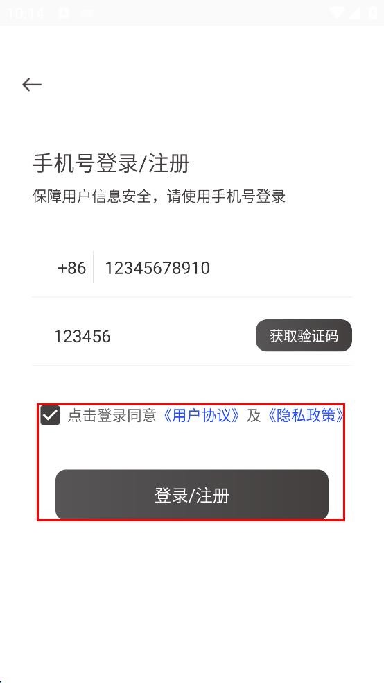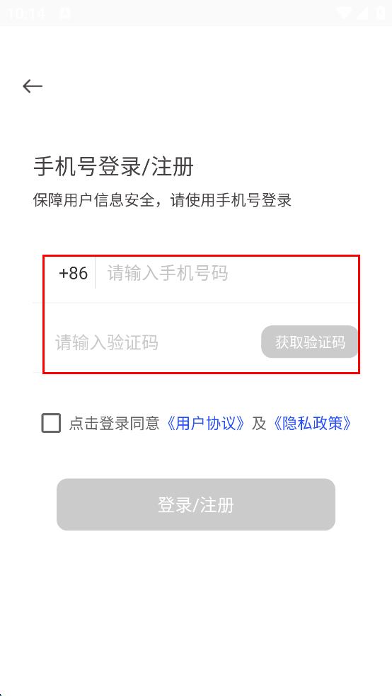 3、輸入手機號碼和驗證碼,勾選點擊登錄同意用戶協(xié)議及隱私政策。