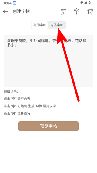 3、在字帖創(chuàng)建流程中,點擊電子字帖選項,完成字帖類型選擇。