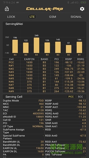 cellular pro安卓最新版本又被稱為網(wǎng)絡(luò)頻段鎖定器,是一個幫助用戶檢測網(wǎng)絡(luò)信號和進(jìn)行優(yōu)化的工具,軟件可以檢測無線網(wǎng)信號強(qiáng)弱,可以進(jìn)行優(yōu)化,參數(shù)詳細(xì),使用方便,支持切換卡槽檢測,讓網(wǎng)絡(luò)變得更流暢,上網(wǎng)不卡頓。