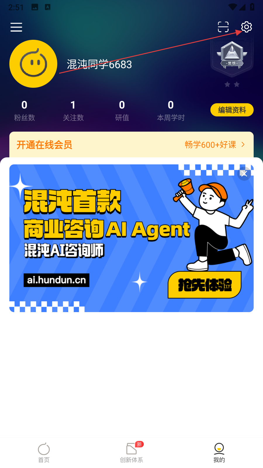 1、打開(kāi)混沌APP,點(diǎn)擊頁(yè)面底部我的,進(jìn)入個(gè)人頁(yè)面。