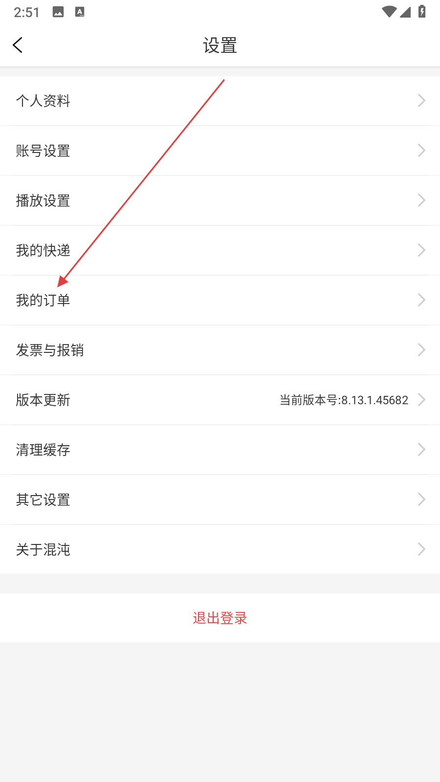 3、在設(shè)置界面里,點(diǎn)擊我的訂單選項(xiàng)。