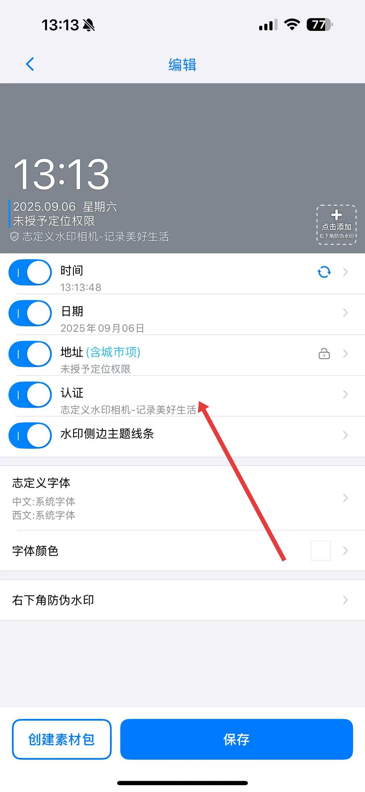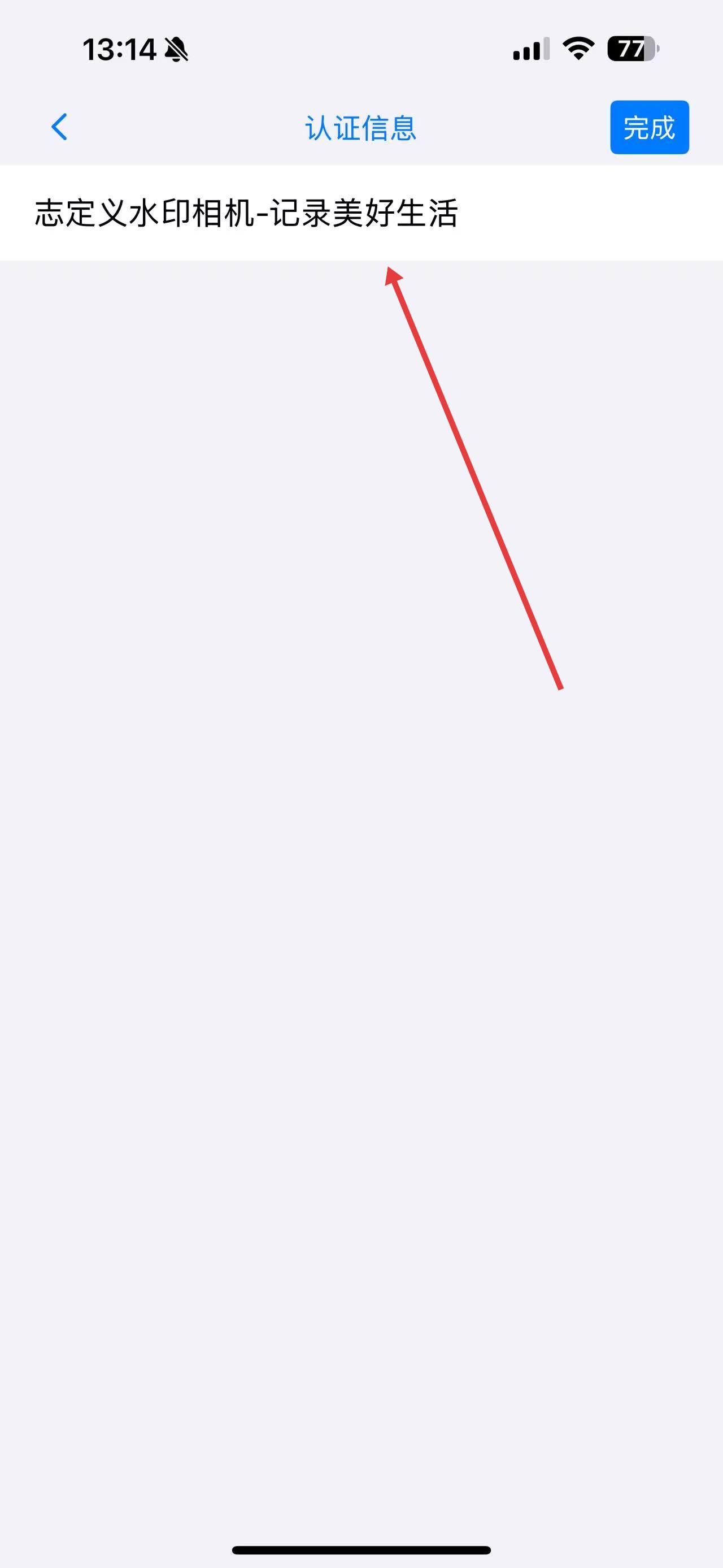 3、在認(rèn)證信息編輯界面,輸入想要設(shè)置的認(rèn)證內(nèi)容,比如志定義水印相機(jī)-記錄美好生活。