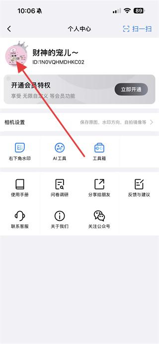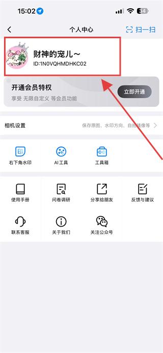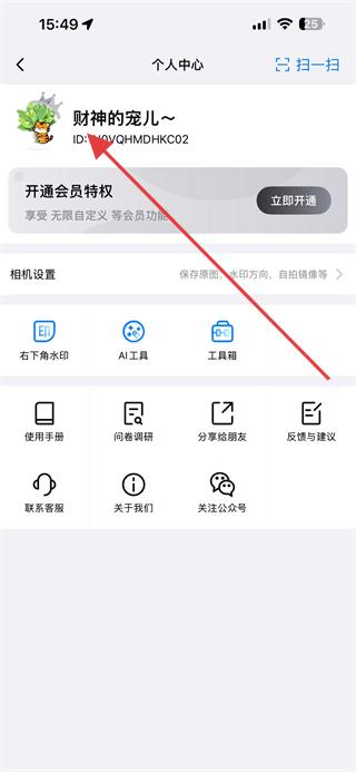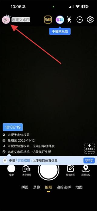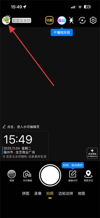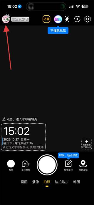1、打開自定義水印相機(jī)應(yīng)用,點(diǎn)擊左上角的頭像進(jìn)入個人中心。