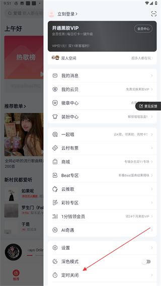 2、在右側(cè)彈出的菜單欄中,找到并點擊定時關(guān)閉的按鈕。