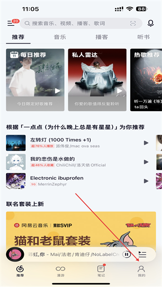 1、打開網(wǎng)易云音樂,進入時點擊底部我的圖標。