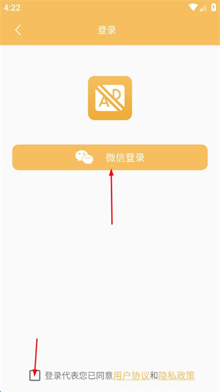 3、在登錄界面,勾選登錄代表您已同意用戶(hù)協(xié)議和隱私政策,點(diǎn)擊微信登錄并完成登錄操作。
